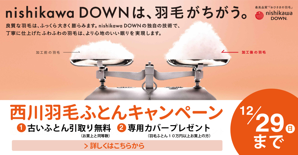 西川羽毛・もっとよく眠れるキャンペーン開催中