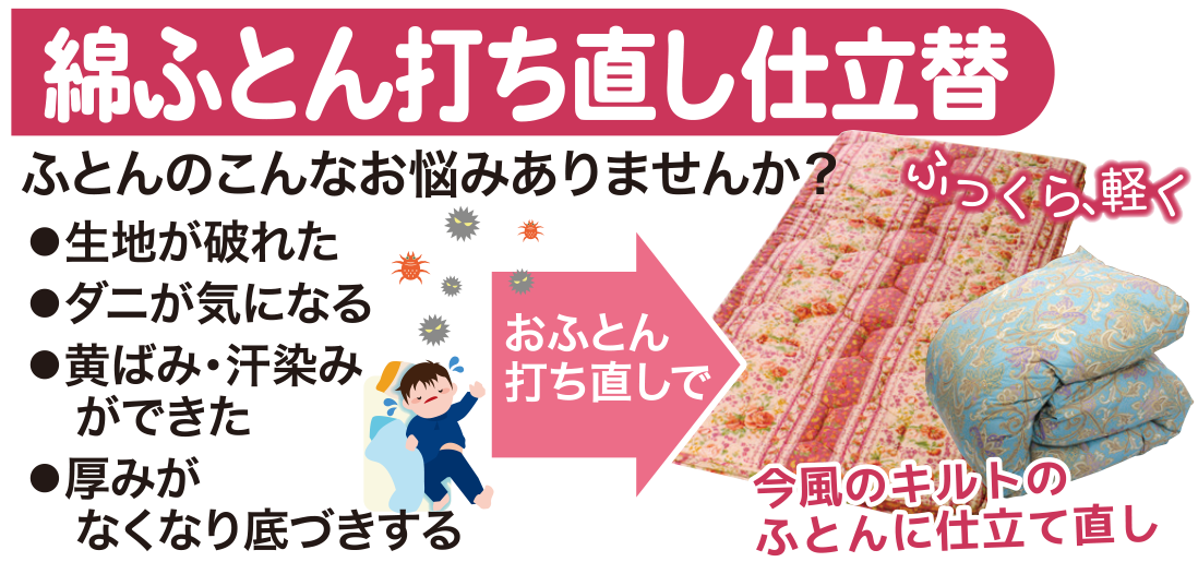 掛ふとん(キルト加工) | 敷ふとん(三層仕立て) | ||