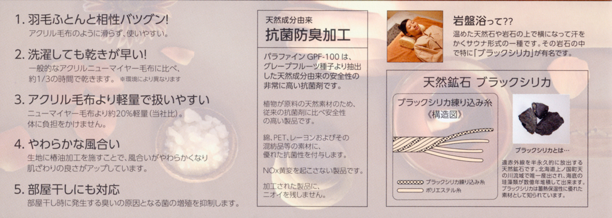 使用している『ロビロン』は、体温を魔法瓶のように逃がさない性質があります。 - 「やわらかな肌触り」