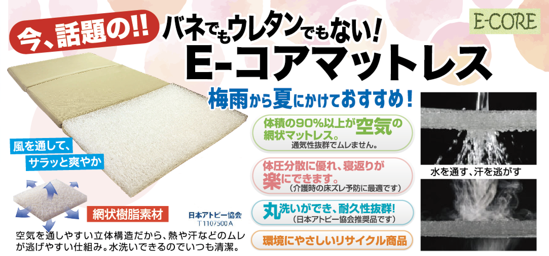 Eコアマットは90%が空気で、気化熱で体温を下げるのでピッタリです。