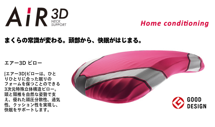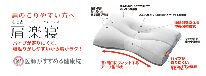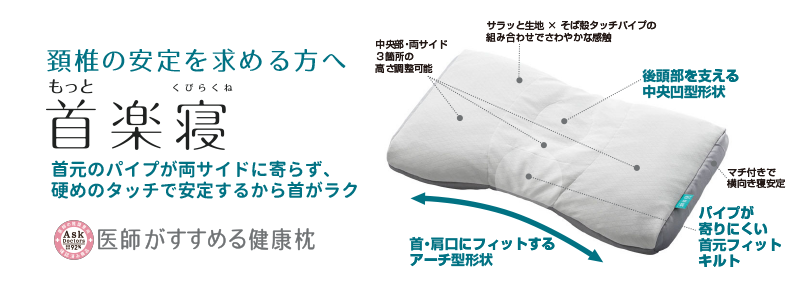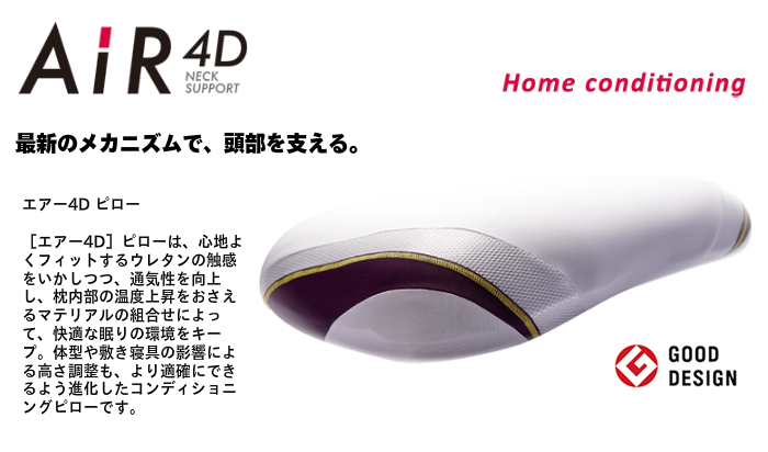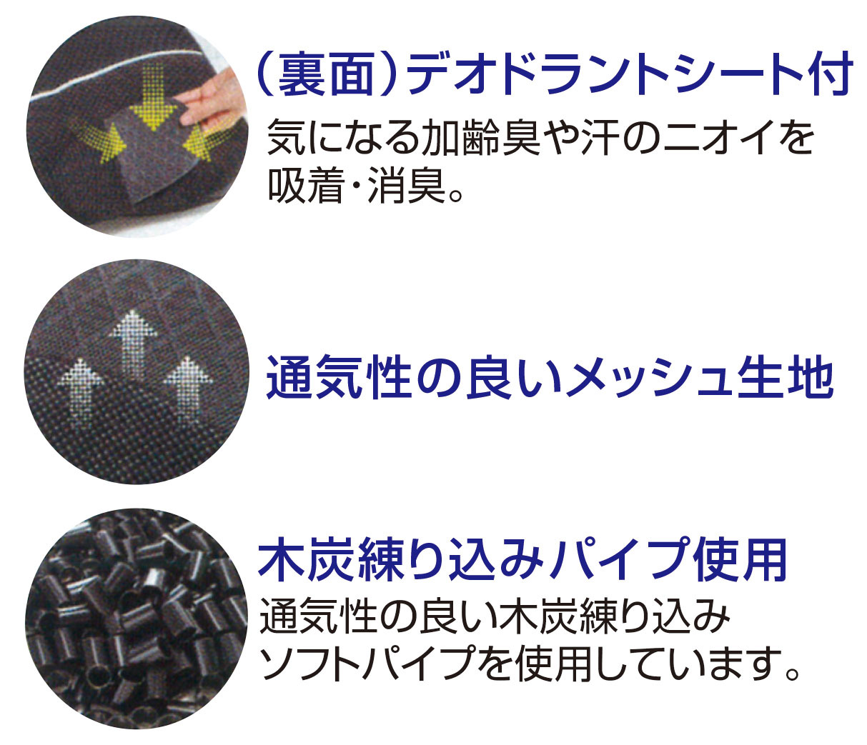 特徴 | 中央凹型形状/表裏リバーシブル使用可能/生地:コラーゲン加工/パイプ:消臭加工/2ヵ所高さ調節 |