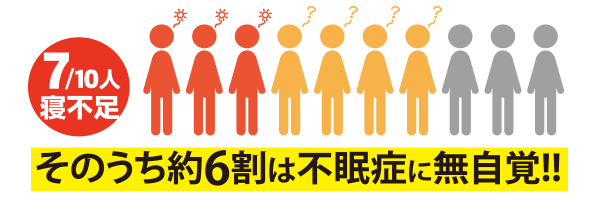 世界的に見ても睡眠時間が短いと言われている日本人。とある睡眠に関する調査では38.2%が「日常に寝不足を感じる」「少し感じる」が36.2%と、約7割の人が不眠に悩まされているにも関わらず約6割の人が不眠症の自覚がないと答えていました。