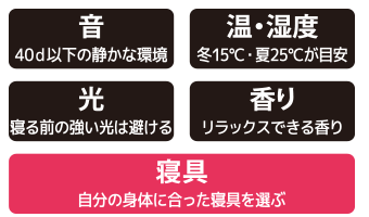 睡眠環境を整えることで睡眠の質が変わると言われています。環境を整えてあげるだけで、今までと変わらない睡眠時間でも朝目が覚めたときに、スッキリすることがあります。特に寝具は、身体の疲れに大きく関わってきます。
